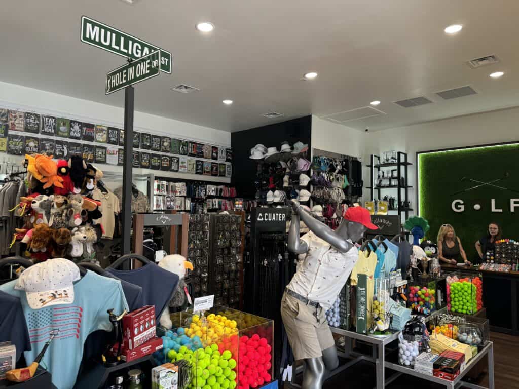 Whether you’re a scratch golfer or just someone who loves to hit the ball around, stop by the Mulligan Golf Gift Store for apparel, golf balls, tees, decor and much more. You’ll be sure to find something golf related to take home as a souvenir or gift.