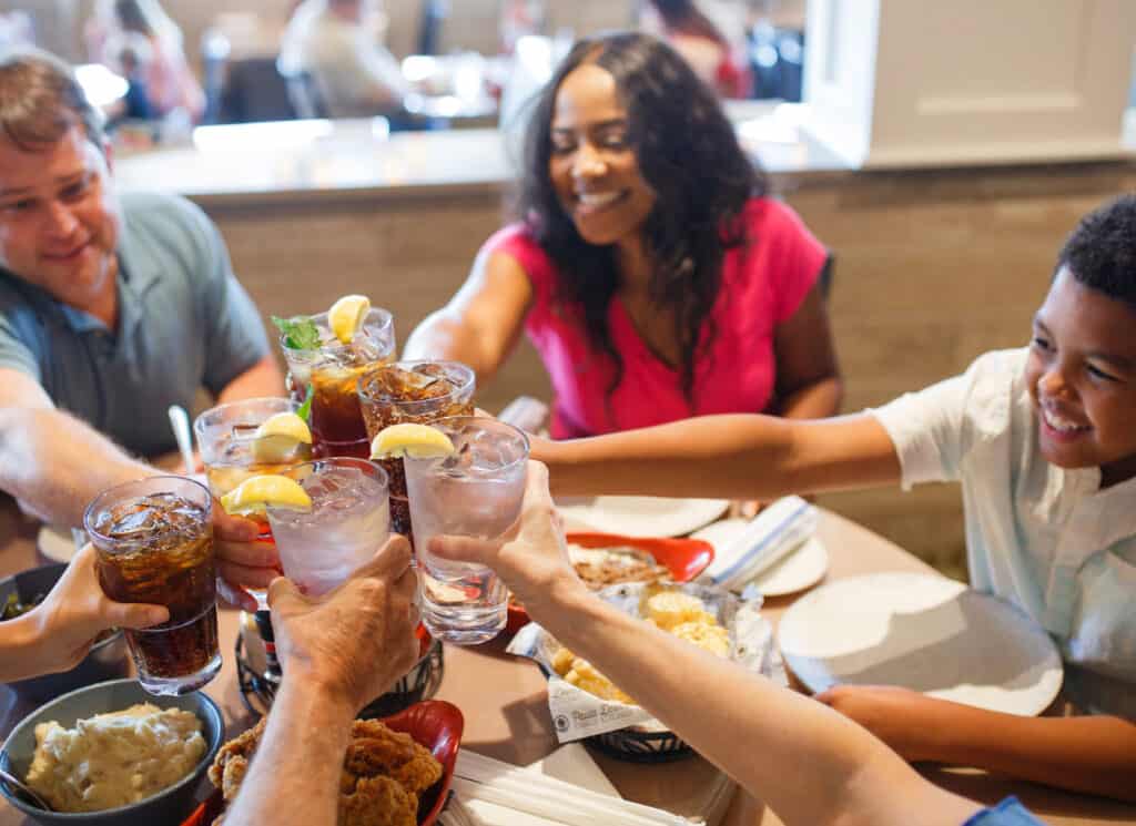 Serving lunch and dinner, enjoy family style dining and classic Deen family recipes all while experiencing a beautiful view of Lake Broadway! Southern style entrees and famous side dishes include everything from delicious fried chicken, mouth-watering pot roast, fried catfish, creamed potatoes, mac n cheese, collard greens and so much more!