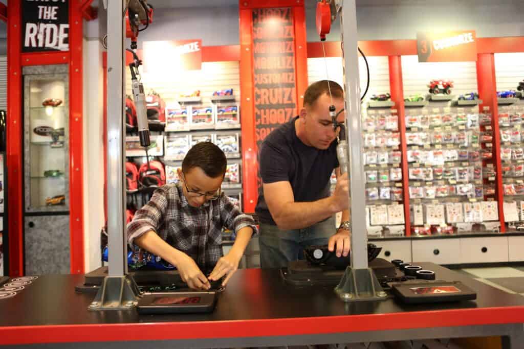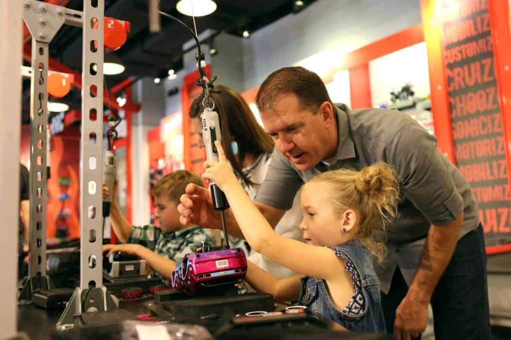 Ridemakerz invites guests, or “Customizers”, into the ultimate car customizing experience where they can build one-of-a-kind Ridez (1:18 scale; about the size of a football). Between body styles and colors, rims and tires, lights and accessories, there are more than 649 million possible combinations to make it your own. Ridemakerz is a fun and immersive building and customizing experience for families, kids, and car enthusiasts alike.